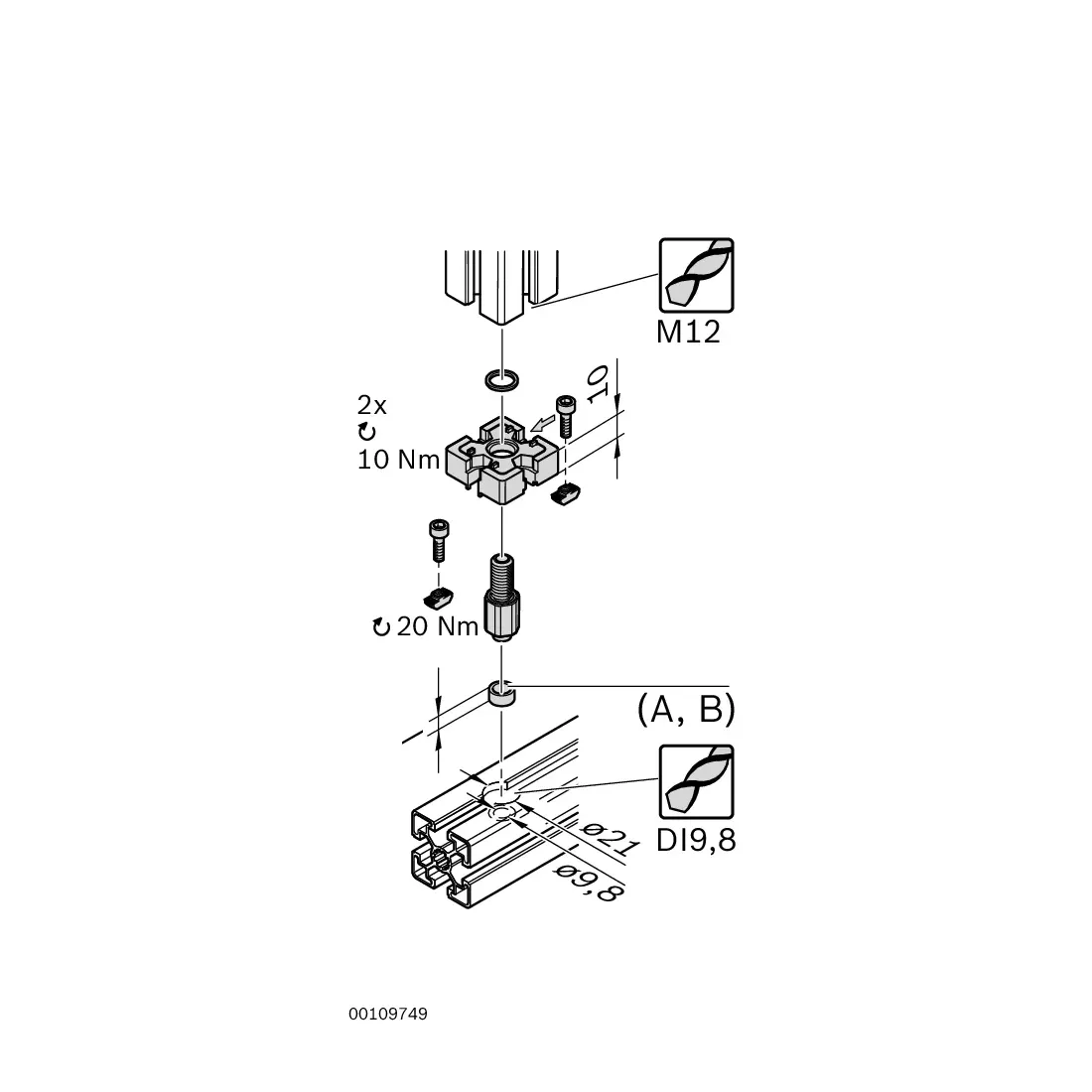- 2x śruba z łbem walcowym ISO4762-M6x18,2x nakrętka młoteczkowa rowek 10 M6