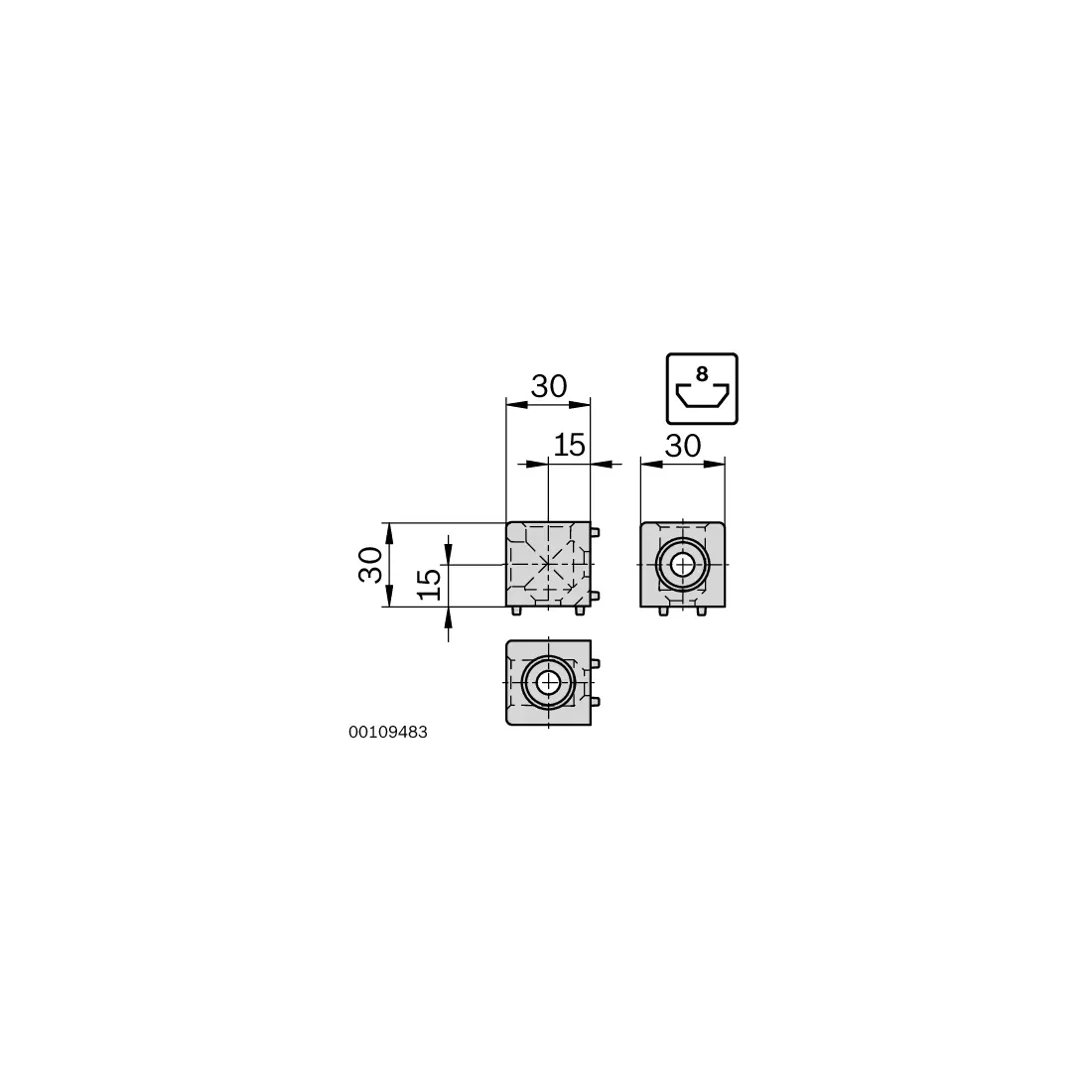 - Z materiałem do mocowania, Łącznik węzłowy sześcienny designLINE, Zaślepka D18 szara ostrzegawcza (PP)