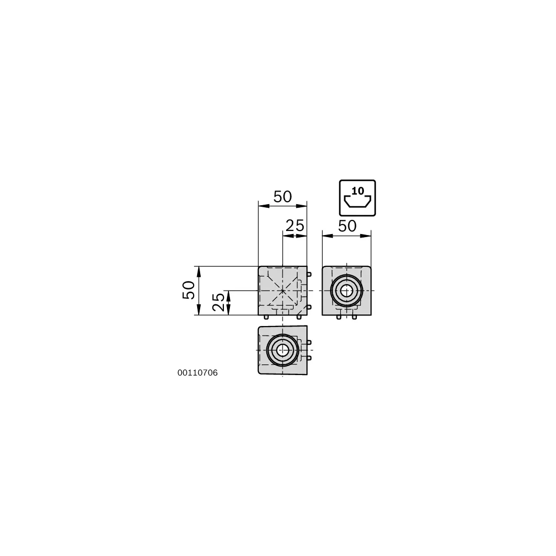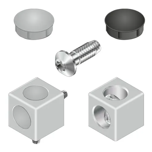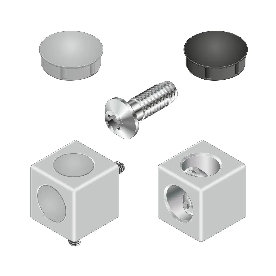 - Z materiałem do mocowania, Łącznik węzłowy sześcienny (Standard), Zaślepka D30 szara ostrzegawcza (PP)