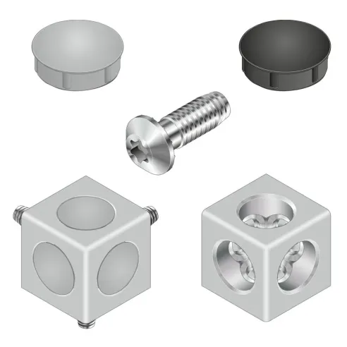 - Z materiałem do mocowania, Łącznik węzłowy sześcienny (Standard), Zaślepka D30 szara ostrzegawcza (PP)