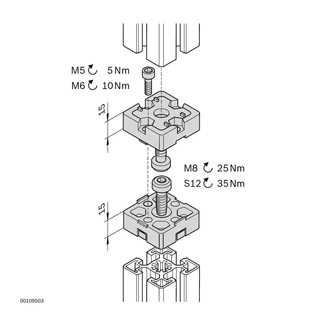 - 2 x śruba z łbem walcowym DIN7984 M8x3; 4 x śruba z łbem walcowym DIN7984 M5x25; 4 x nakrętka sześciokątna DIN934 M5