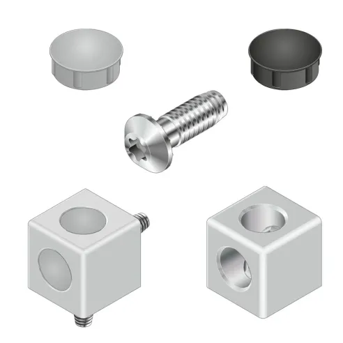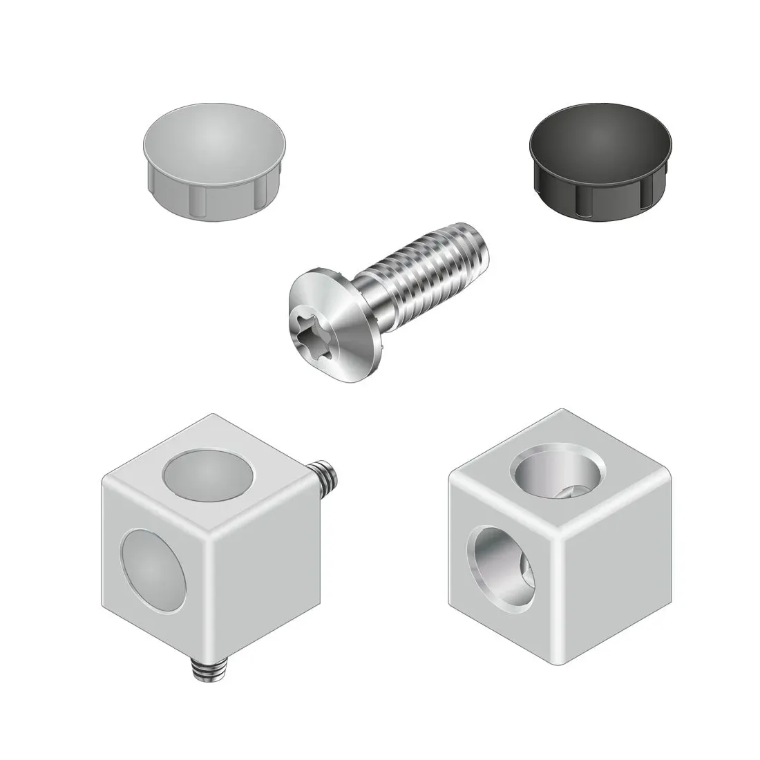 - Z materiałem do mocowania, Łącznik węzłowy sześcienny designLINE, Zaślepka D24 szara ostrzegawcza (PP)
