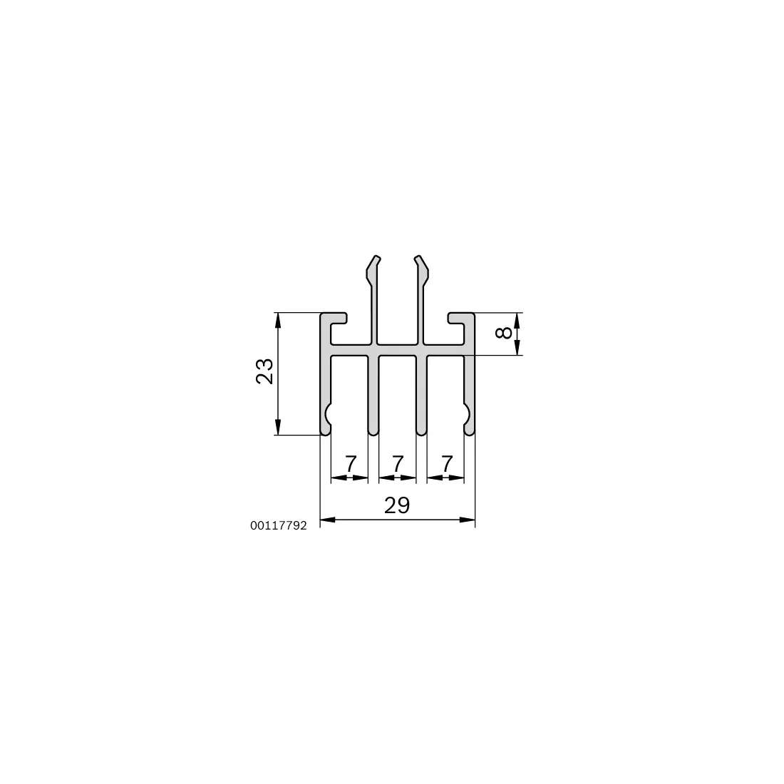 - Górny profil zapewnia prawidłowe prowadzenie skrzydła drzwiowego, zwiększając trwałość i bezpieczeństwo całego systemu przesuwnego.