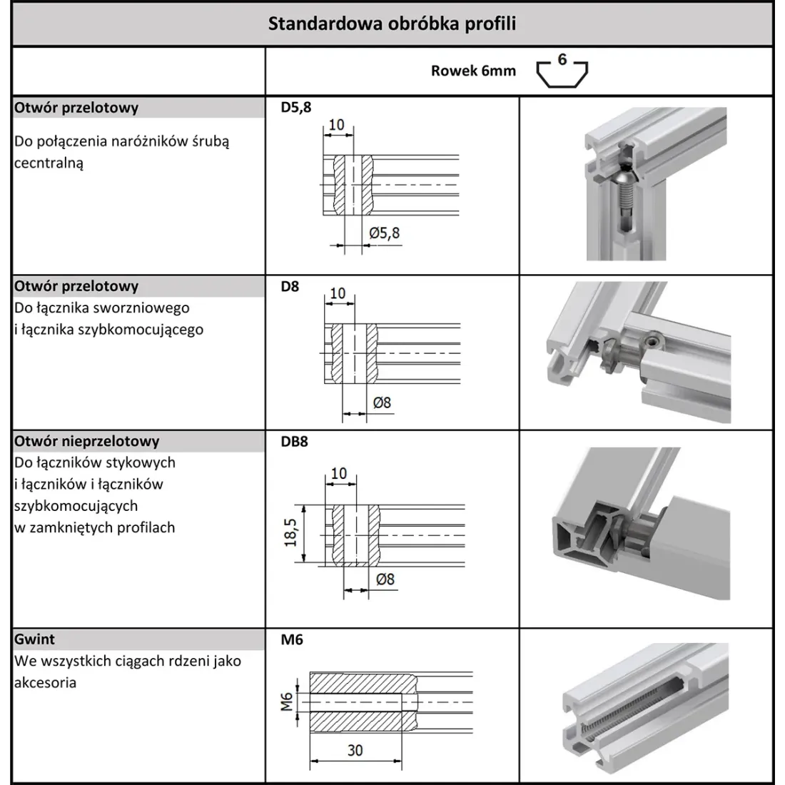 - Oszczędność Czasu: Prosty montaż profilu 20x20 1N nie wymaga specjalistycznych narzędzi ani umiejętności, co pozwala zaoszczędzić czas i zmniejszyć koszty.