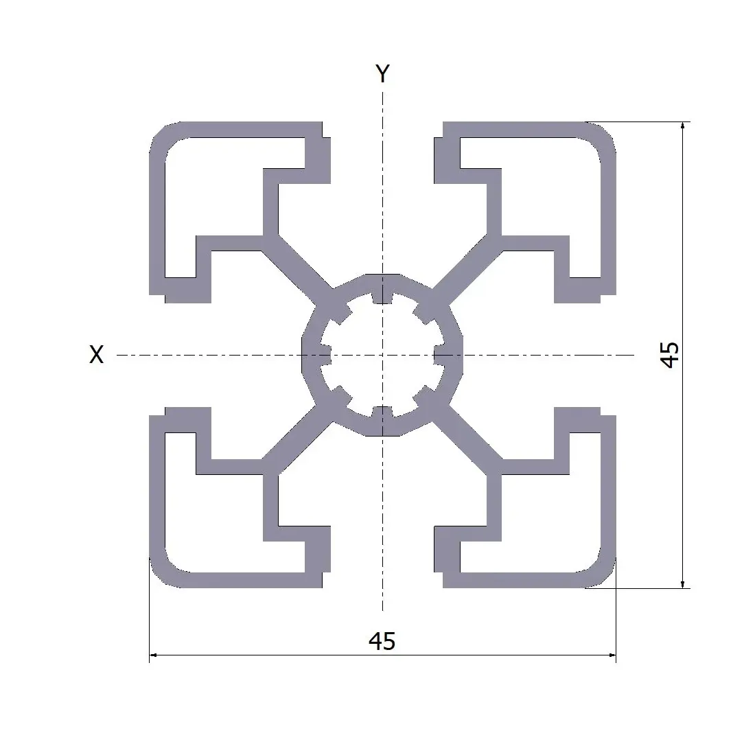 Wysoka wytrzymałość: Profil 45x45L, zarówno w wersji standardowej, jak i czarny anodowany, wyróżnia się wyjątkową odpornością na obciążenia dzięki zoptymalizowanemu przekrojowi poprzecznemu. To rozwiązanie, które sprawdza się w konstrukcjach wymagających dużej wytrzymałości.