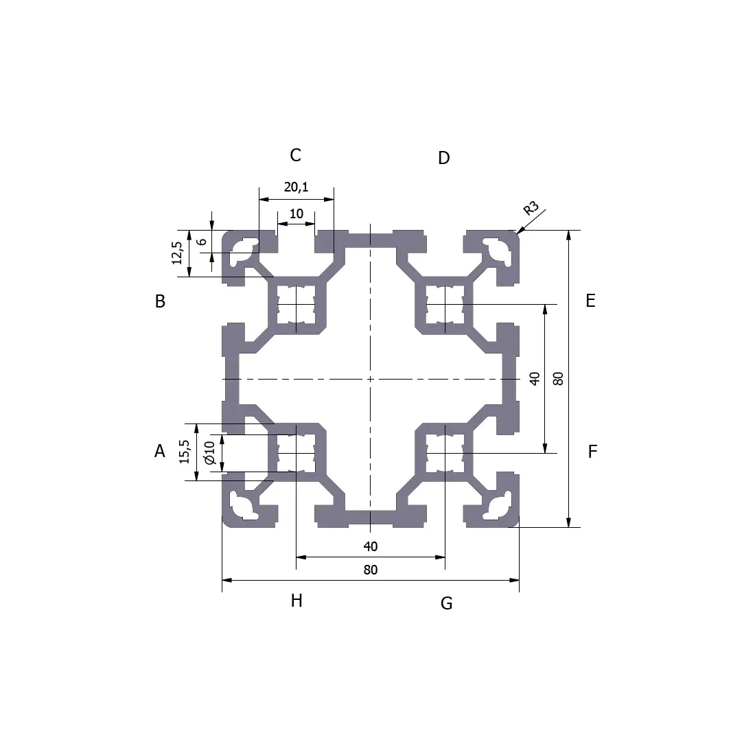 - Wytrzymałość na duże obciążenia: Profil 80x80L jest zaprojektowany z myślą o konstrukcjach narażonych na duże obciążenia, takich jak ramy nośne, systemy transportowe czy maszyny, oferując wysoką nośność i stabilność.