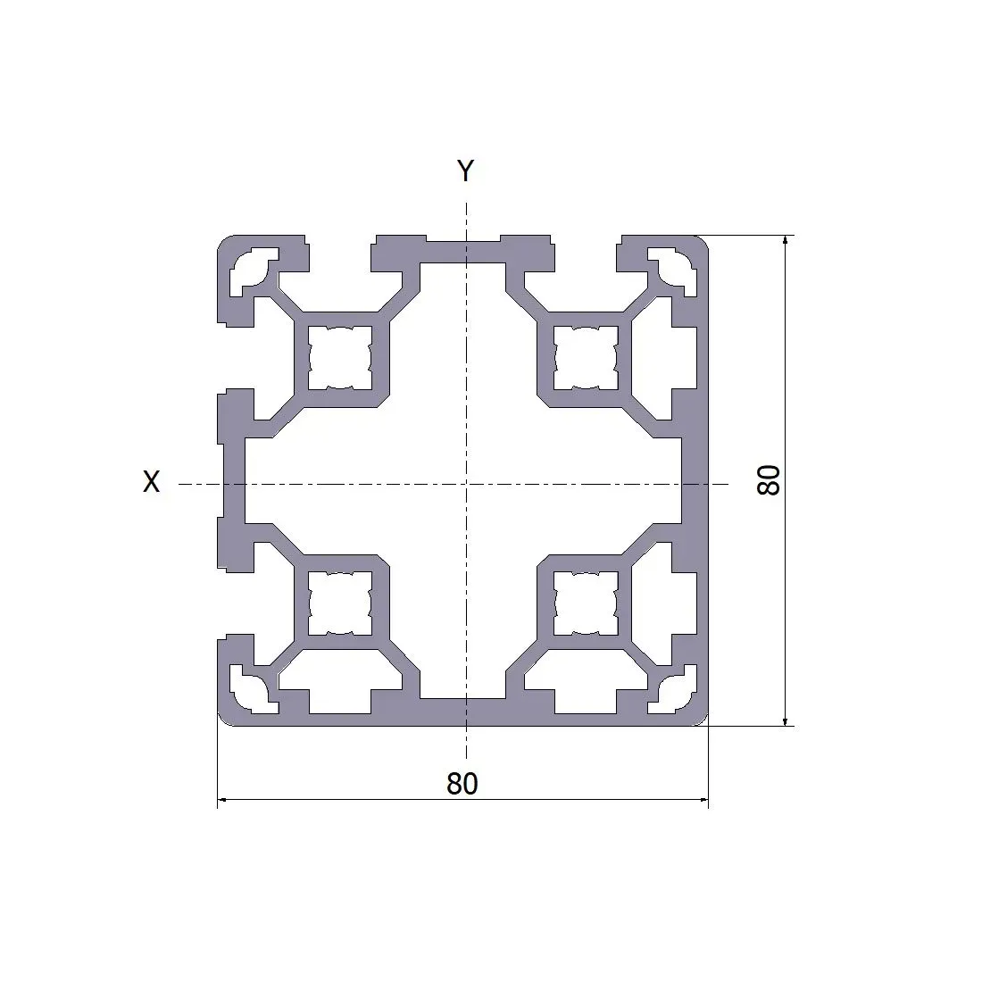 - Dostępne wersje: Oprócz profilu 80x80L, seria obejmuje także profile prostokątne 80x120L oraz 80x160L, oferujące różnorodne opcje dla bardziej złożonych konstrukcji.