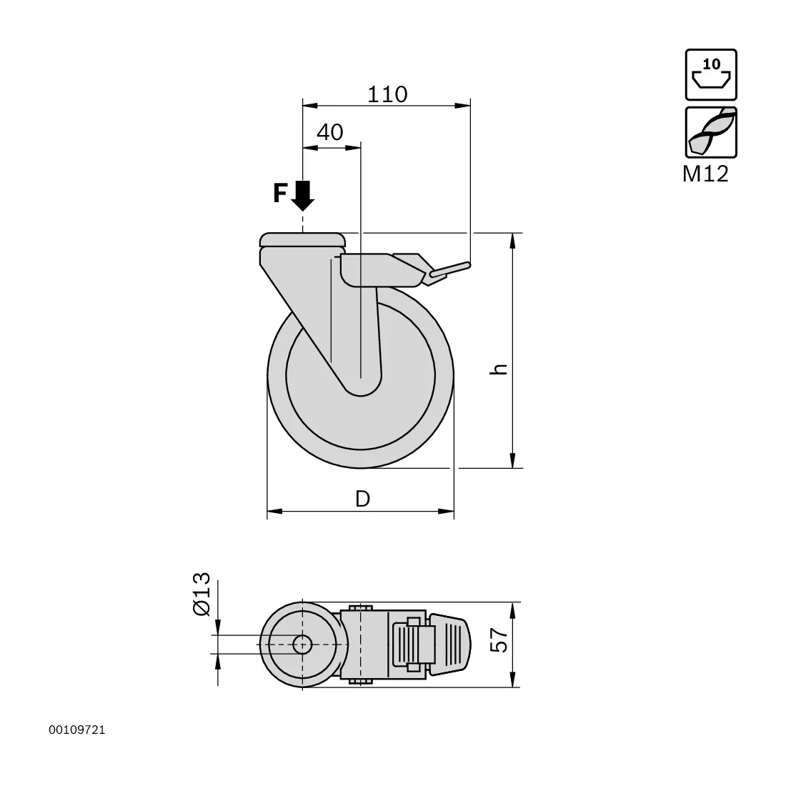 - Śruba M12x40 (ISO 4762) do mocowania w ciągu rdzeni profilu (↻ 35 Nm),Pierścień oporowy w przypadku zastosowania zaślepki z otworem